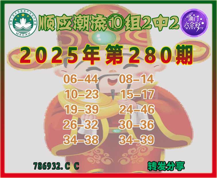 280期:👑顺应潮流👑⑩组2中2👑关注中奖
